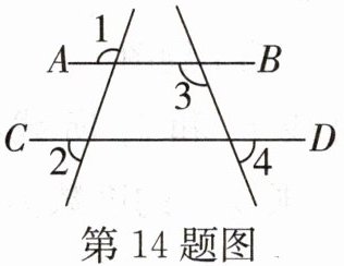 14. (滨州中考)如图,直线AB//CD,则下列结论正确的是 (