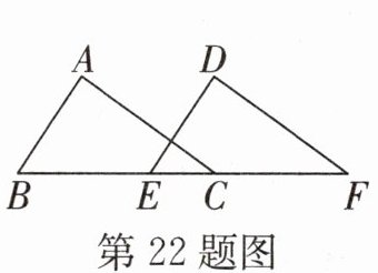 22. (鞍山中考)如图,三角形ABC沿BC所在直线向右平移得到三角形DEF,已知EC= 2,BF= 8,则平移的距离为______.