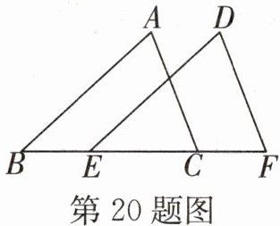 20. (南充中考)如图,将三角形ABC沿BC向右平移得到三角形DEF,若BC= 5,BE= 2,则CF的长是 (
