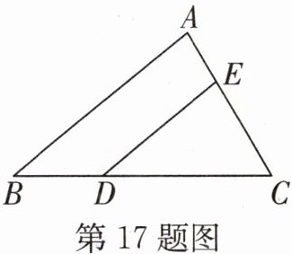 17. (常州中考)如图,在三角形ABC中,点D,E分别在BC,AC上,∠B= 40°,∠C= 60°,若DE//AB,则∠AED= ______°.