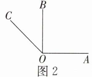 错解 如图,因为$∠AOB= 90^{\circ }$,$∠AOB= 2∠BOC$,所以$∠BOC= 45^{\circ }$,所以$∠AOC= ∠AOB-∠BOC= 90^{\circ }-45^{\circ }=45^{\circ }$。