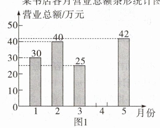 (1)该书店 4 月份的营业总额为$182-(30+40+25+42)=45$(万元). 补全统计图如图所示: