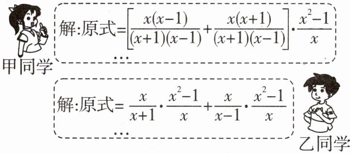 16. 化简$(\frac {x}{x+1}+\frac {x}{x-1})\cdot \frac {x^{2}-1}{x}$. 下面是甲、乙两位同学的部分运算过程: