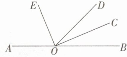解:设∠AOE=∠EOD=α,∠DOC=∠COB=β,∠AOB=180°,则2α+2β=180°,α+β=90°。