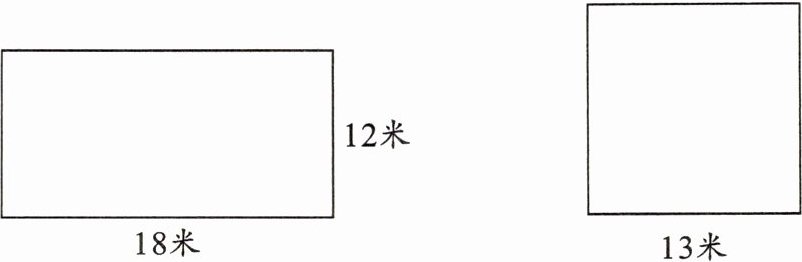长方形:C=(18+12)×2=60(米) S=18×12=216(平方米) 正方形:C=13×4=52(米) S=13×13=169(平方米)