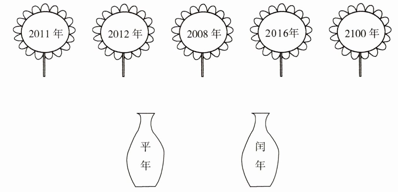 平年:2011年、2100年 闰年:2012年、2008年、2016年