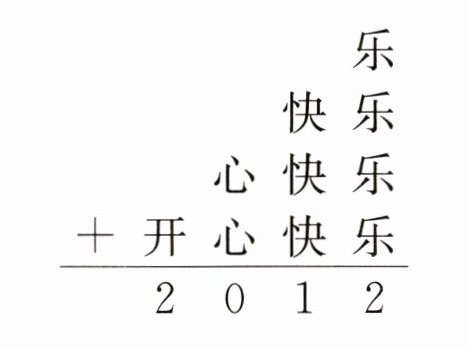 竖式中“开”“心”“快”“乐”分别代表不同的数字,相同的汉字代表相同的数字。要使竖式成立,那么开心快乐表示的四位数是______。