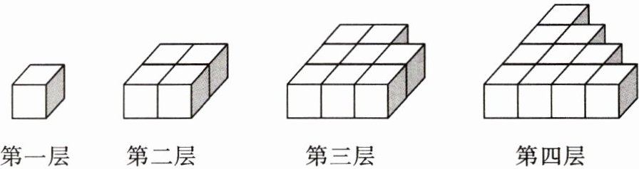 思路点拨: 由上到下逐层分析,各层的小正方体如下图所示,这样就能顺利求出小立方体的数目。