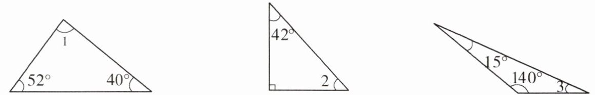 5.∠1=180°-52°-40°=88° ∠2=90°-42°=48° ∠3=180°-140°-15°=25°