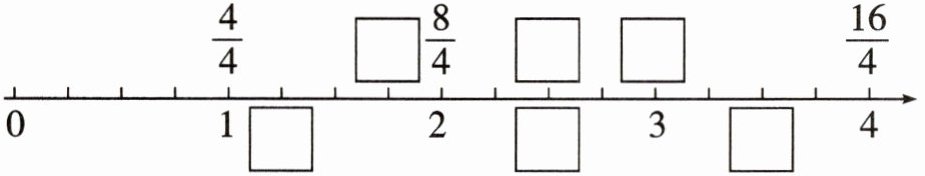 直线上面的□从左到右依次为:$\frac{7}{4}$;$\frac{10}{4}$;$\frac{12}{4}$