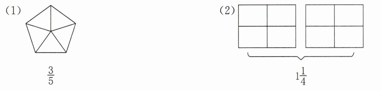 5. (★★☆☆☆)给下列图形涂色,表示下面的分数。