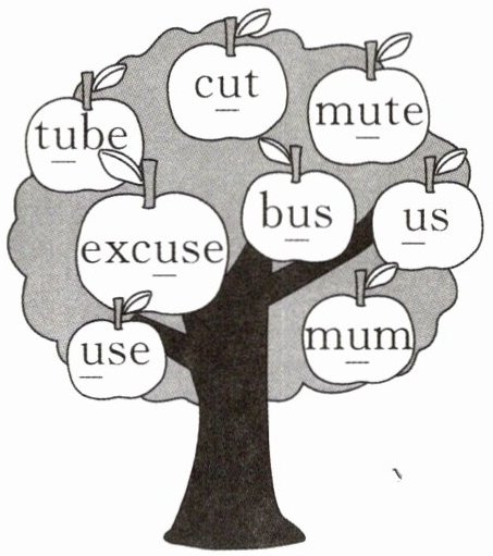 早上,Tom 正在朗读英文单词。请根据篮子里的单词画线部分的发音,给苹果树上的单词分类。