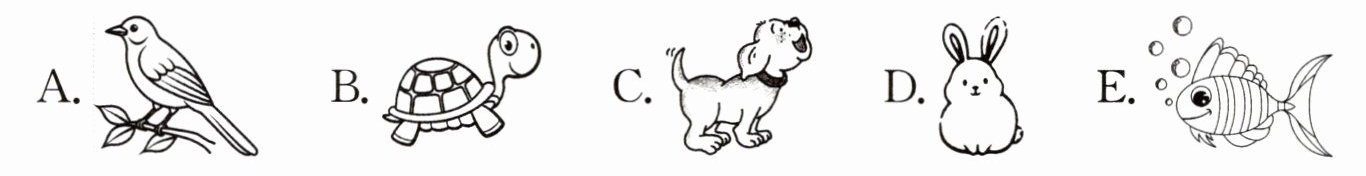 活动开始了,宠物们一一亮相。请根据主持人的描述,选择正确的图片。
