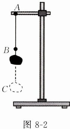 3. 如图 8 - 2 所示,小明在做“模拟蹦极”的小实验,一根橡皮筋一端系一个小石块,另一端固定在 A 点,B 点是橡皮筋不系小石块自然下垂时下端所在的位置,C 点是小石块从 A 点自由释放后所能达到的最低点。不计空气阻力,关于小石块从 A 点到 C 点运动过程的说法正确的是(