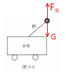 6. (1)如图9-6所示,一辆小车上固定一个铁杆,铁杆顶端焊接一个铁球。当整体向右匀速运动时,请在图中画出铁球的受力示意图。