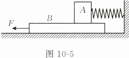 6. 如图 10 - 5 所示,木块 A 放在长木板 B 上;弹簧一端接 A,另一端固定在墙壁上;长木板 B 放在水平地面上。初始时弹簧处于自然状态,现使水平拉力 F 逐渐增大,当水平拉力增大到 12 N 时,弹簧恰好开始变长;当拉力 F 为 18 N 时,弹簧长度不再增加,并且此时长木板 B 以速度 v 做匀速直线运动。下列判断错误的是(