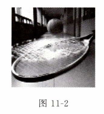 6. 网球爱好者小敏拍下了如图 11-2 所示的照片,照片中,原本网球拍被网球击打后下落,可是球网上的面粉由于具有