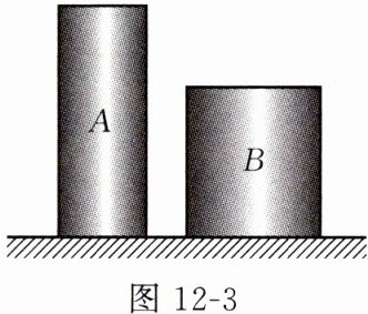 5. 如图 12 - 3 所示,圆柱体 A 位于水平地面上。若将该圆柱体 A 均匀压成圆柱体 B,则关于圆柱体 A 和 B 的质量、密度、对地面的压力、对地面的压强的判断正确的是(