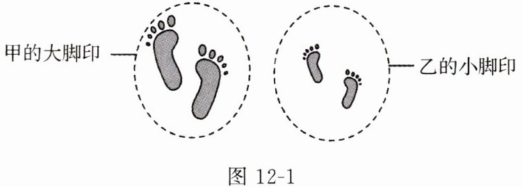 1. 如图 12 - 1 所示,甲、乙两人在完全相同的沙滩上散步,留下深浅相同、大小不同的脚印,则(