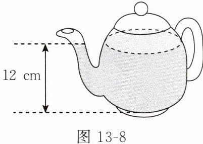7. 如图 13 - 8 所示,平底茶壶(茶壶的厚度不计)的质量是 400 g,底面积是 $40cm^{2}$,内盛质量为 0.6 kg、深度为 12 cm 的水,放在水平桌面上并静止。($g$ 取 $10N/kg$,$\rho_{水}= 1.0×10^{3}kg/m^{3}$)
