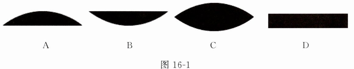 2. 在学校举办的科技运动会上,某同学水平抛出一个飞盘,快速前进的飞盘越升越高。从侧面看,飞盘的形状应为图 16-1 中的(