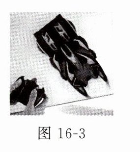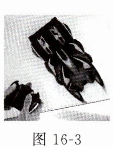 4. 图 16-3 是一款遥控爬墙车,它之所以能吸附在墙壁上,主要是因为车身内的电动排风机将空气排出,车身底部的空气需要不断地补充,使车身和墙壁之间的空气流速变大,压强变