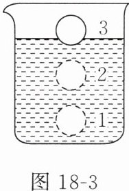 6. 将乒乓球压入水底,松手后乒乓球上浮过程中依次经过位置1和2,最终在位置3静止,如图18-3所示。忽略乒乓球大小的变化,则乒乓球(