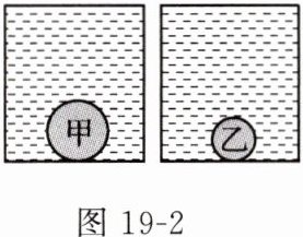 4. 两个相同的容器中分别装满了两种液体,把甲、乙两球分别轻轻放入两液体中,最后处于如图19-2所示的状态。甲、乙排开液体的重力相等,则(