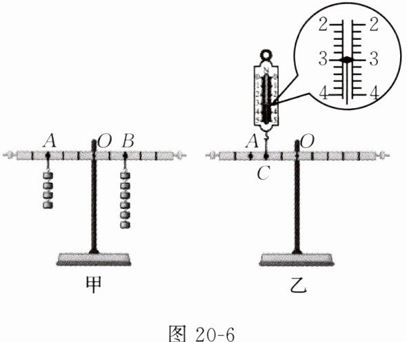 (2)如图 20 - 6 甲所示,杠杆在水平位置平衡。若将杠杆左右两侧各去掉两个钩码,则杠杆
