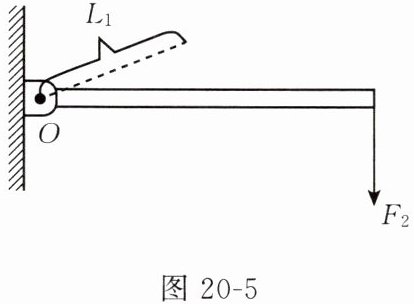 5. 如图 20 - 5 所示,轻质杠杆在力$F_{1}$、$F_{2}$的作用下处于平衡状态,$L_{1}为F_{1}$的力臂。请在图中画出$F_{1}的示意图及F_{2}的力臂L_{2}$。