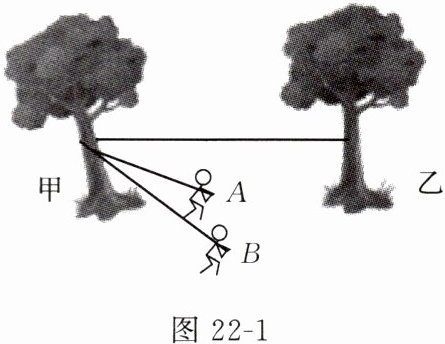 1. 如图 22-1 所示,小明看到树被风刮歪,想利用所学知识把树扶正。他把绳子的一端系在乙树上,然后绕过甲树用力拉绳子。在此过程中(