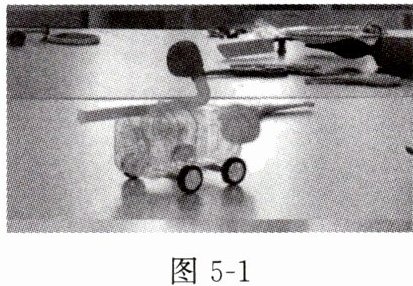 5. 小华利用饮料瓶、气球、瓶盖、吸管等制作了一个简易喷气小车,如图5-1所示,拔掉吸管口的塞子,气球向左喷气,同时小车会向右运动。这说明物体间力的作用是