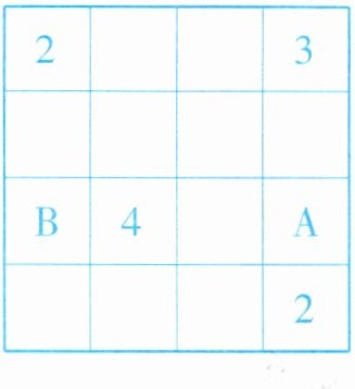 在下面的方格中,每行、每列都有1~4这四个数,并且每个数在每行、每列都只出现一次。B应该是