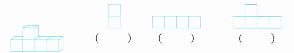 1. 观察下面的立体图形,找出从前面、上面、左面看到的图形。