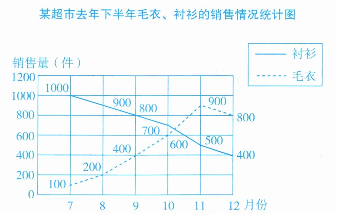 下面是某超市去年下半年毛衣、衬衫的销售情况统计图。