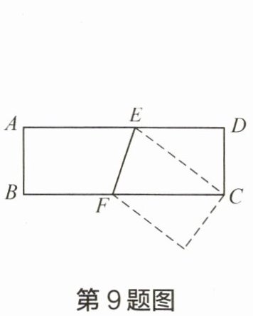 9. 如图,在长方形 $ ABCD $ 中,$ AB = 3 $,$ AD = 9 $,将此长方形折叠,使点 $ A $ 与点 $ C $ 重合,折痕为 $ EF $,则 $ EC $ 的长为______。