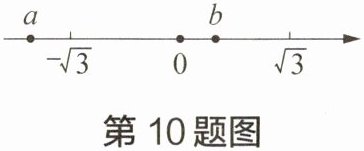 10. 实数$a$、$b$在数轴上所对应的点如图所示,化简$\vert \sqrt{3} - b\vert + \vert a + \sqrt{3}\vert + \sqrt{a^{2}} = $______。