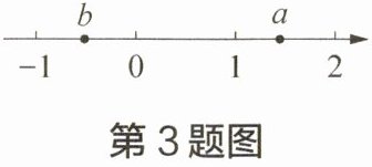 3. 已知实数$a$、$b$在数轴上对应的点如图所示,则下列式子正确的是( )。