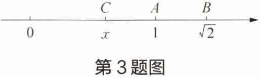 3. 如图,数轴上与$1$、$\sqrt{2}对应的点分别为A$、$B$,点$B关于点A的对称点为点C$,设点$C表示的数为x$,则$\vert x-\sqrt{2}\vert+\frac{2}{x} = $( )。
