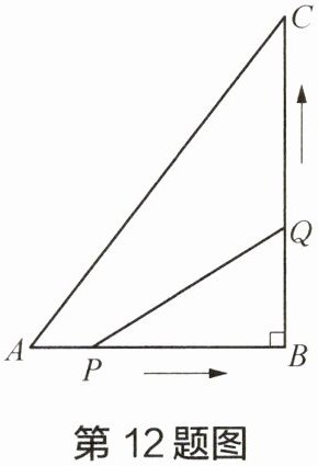 12. 如图,在 $ \triangle ABC $ 中,$ \angle B = 90^{\circ} $,$ AB = 6 cm $,$ BC = 8 cm $,若点 $ P $ 从点 $ A $ 出发沿 $ AB $ 边向点 $ B $ 以 $ 1 cm/s $ 的速度移动,点 $ Q $ 从点 $ B $ 出发沿 $ BC $ 边向点 $ C $ 以 $ 2 cm/s $ 的速度移动,两点同时出发(当点 $ Q $ 到达点 $ C $ 后,$ P $、$ Q $ 两点均停止运动)。问:$ \triangle PBQ $ 的面积能否为 $ 10 cm^2 $?