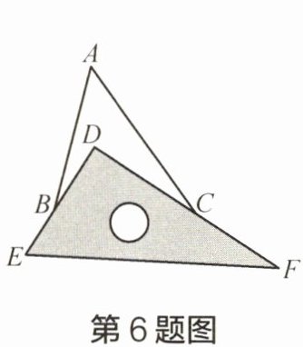6 如图,将一个直角三角板 DEF 放置在锐角三角形 ABC 上,使得该三角板的两条直角边 DE、DF 恰好分别经过点 B、C,若∠A = 50°,则∠ABD + ∠ACD = ______。