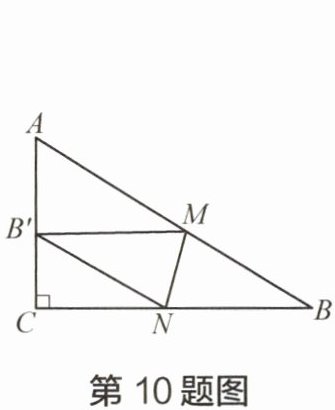 10. 如图,在$\triangle ABC$中,$\angle C= 90^{\circ}$,$\angle B= 32^{\circ}$,点$M$、$N分别在AB$、$BC$边上,将$\triangle BMN沿MN$折叠,使点$B落在直线AC上的点B'$处,当$\triangle AB'M$为直角三角形时,$\angle BMN$的度数为______。