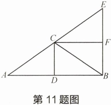 11. 如图,在$\triangle ABC$中,$CD垂直平分AB$,延长$AC至点E$,使$CE= AC$,连接$BE$。