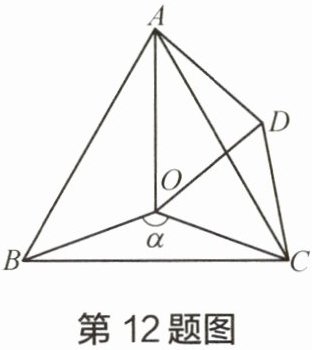 12. 如图,点$O是等边\triangle ABC$内一点,$\angle AOB= 110^{\circ}$,$\angle BOC= \alpha$。以$OC为一边作等边三角形OCD$,连接$AC$、$AD$。