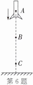 6. (镇江中考)如图所示,某种可重复使用火箭在降落过程中,通过控制推力,沿竖直方向先从$A点减速运动到B$点,再从$B点匀速运动到C$点,且$AB= BC$,不计运动过程中的空气阻力,忽略火箭质量的变化,则下列判断正确的是 (