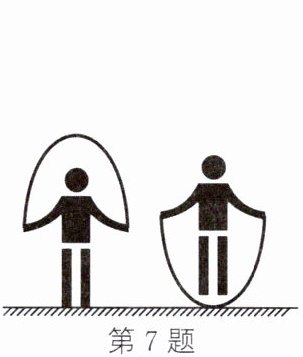 7. 如图所示,跳绳是初中体育学业水平测试项目之一。九年级学生进行$2\min$跳绳比赛,下列说法符合实际答案讲解的是 (