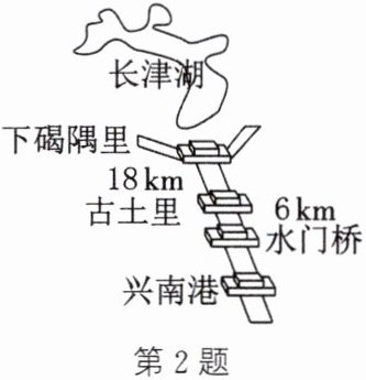 2. 长津湖战役是朝鲜战争的拐点。若美军从下碣隅里经过18km到达古土里,再通过6km外的水门桥就可到达兴南港逃脱志愿军的包围。由于志愿军顽强追击,美军撤退速度缓慢,志愿军成功追击美军。(假设下碣隅里、古土里、水门桥大约在如图所示的直线上,美军撤退速度不变,为0.5km/h)