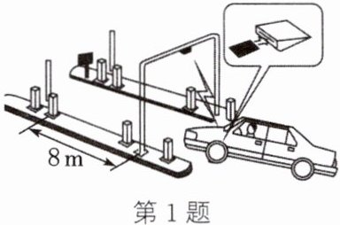 1. (淮安期末)高速公路ETC收费系统是对过往车辆无需停车即能实现收费的电子系统。如图,某高速入口ETC通道的感应识别区的长度是8m,即车辆芯片被识别的位置到通行杆的水平距离。该设备从识别车辆进入到完全抬杆需要1s。某汽车以90km/h的车速匀速行驶10min,快到高速入口开始减速。