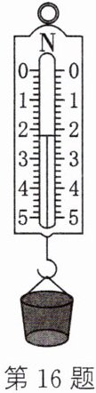 16. 一场大雪造成了很多房屋垮塌,小明想知道屋顶的雪到底有多重,他找来器材进行了测量:①用弹簧测力计测出空杯子重力为0.2N;②将杯中装满水,用弹簧测力计测出总重,如图所示;③倒空杯子,将杯中装满雪的样品,用弹簧测力计测出总重为1N。(g取10N/kg)
