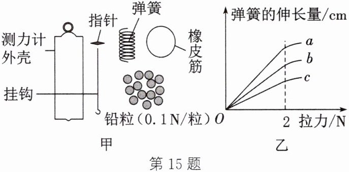 15. 物理学习小组开展了“自制测力计”的项目化学习。项目任务是自制测力计并用于测量力的大小。提供材料如图甲。